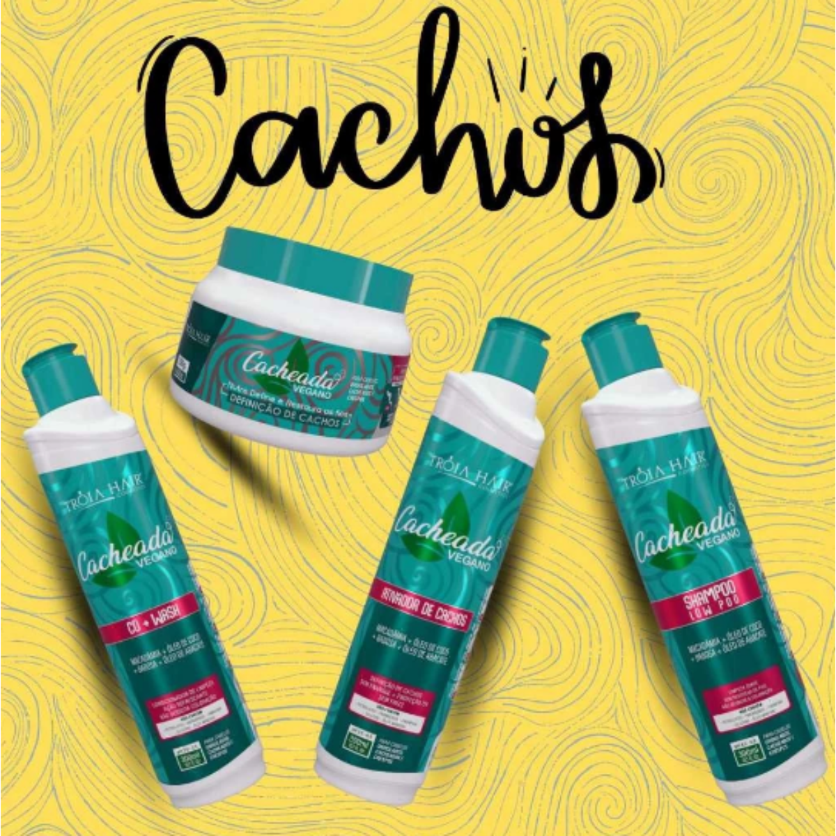 O Kit Tróia Hair Cosmetics Cacheada Quarteto na versão 300ml (com máscara de 250g) foi desenvolvido especialmente para cabelos cacheados, crespos e ondulados, oferecendo um tratamento completo que limpa, hidrata, nutre e define os cachos de forma eficaz. Com fórmula vegana e enriquecida com ingredientes naturais como Óleo de Abacate e Óleo de Macadâmia, este kit promove a saúde dos fios, garantindo brilho, força e definição duradoura.