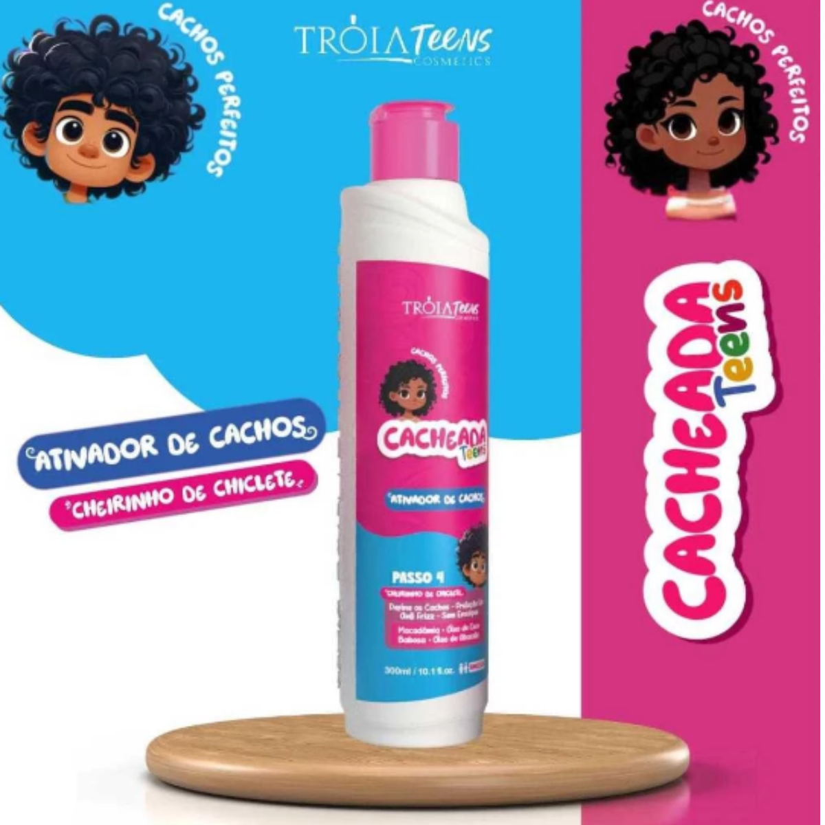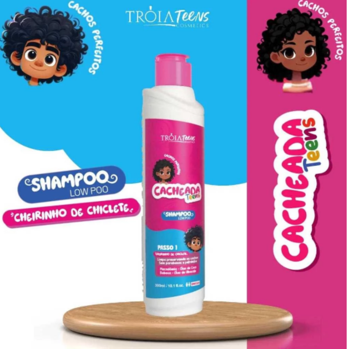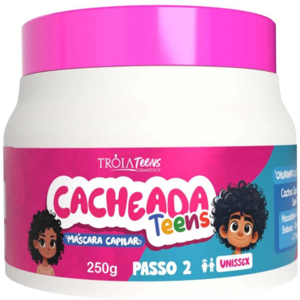O Kit Cacheada Teens Tróia Hair Cosmetics Trio foi desenvolvido especialmente para cabelos cacheados, crespos e ondulados das adolescentes, oferecendo um cuidado completo com limpeza suave, hidratação intensa e definição perfeita. Sua fórmula vegana, segura e leve, enriquecida com Óleo de Abacate e Óleo de Macadâmia, mantém os fios nutridos, fortes e saudáveis. Para deixar o cuidado ainda mais divertido, os produtos contam com uma deliciosa fragrância de chiclete, que transforma a rotina capilar em um momento especial.