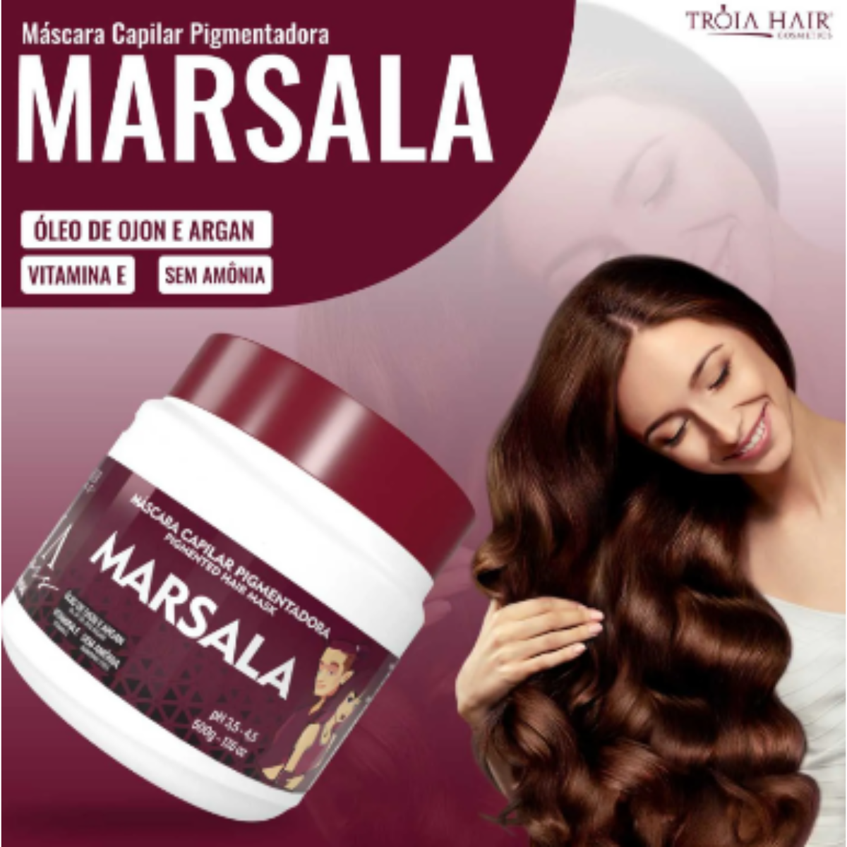 Transforme seus cabelos com a Máscara Capilar Pigmentadora Tróia Hair Cosmetics Colors Marsala 500g e destaque-se com um look audacioso e radiante.