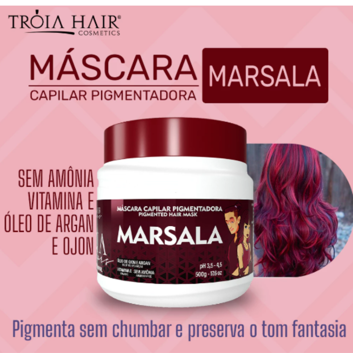 Máscara Capilar Pigmentadora Troia Colors Marsala 500g Cor fantasia – Troia Hair