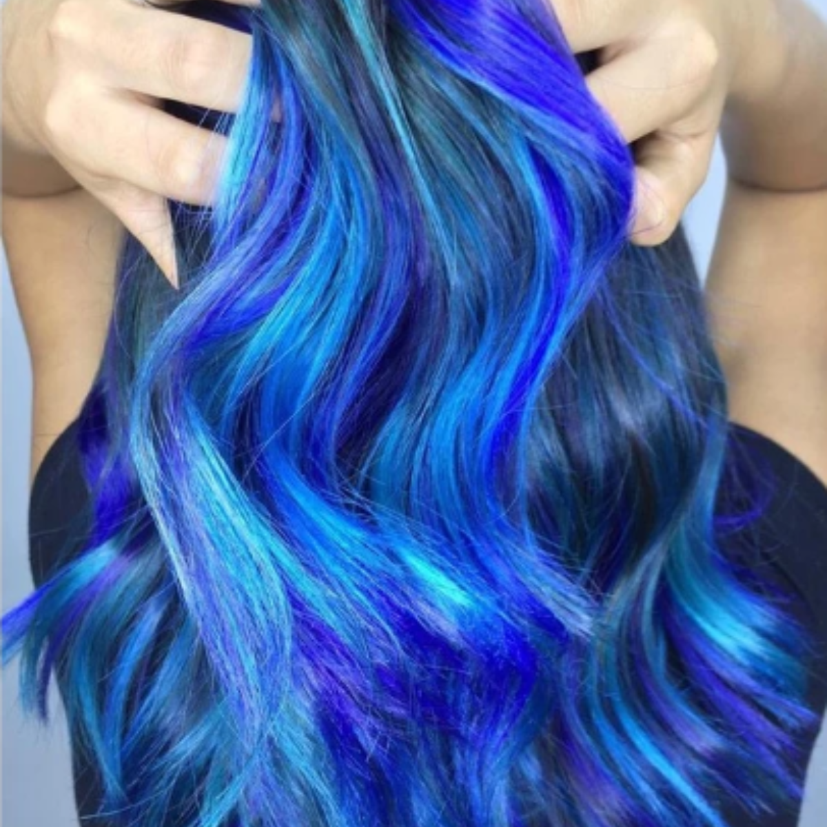 Cabelos vibrantes, coloridos, saudáveis e profundamente nutridos com a Máscara Capilar Pigmentadora Tróia Hair Cosmetics Colors Blue.