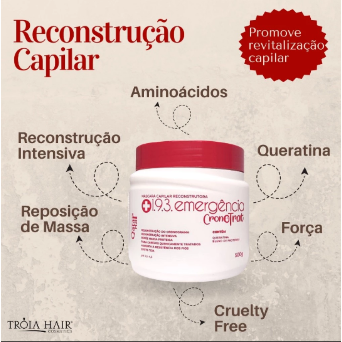 01 Máscara Capilar Emergência Cronotrat 1.9.3 com 500g de puro cuidado capilar.