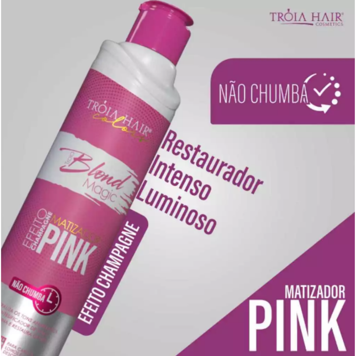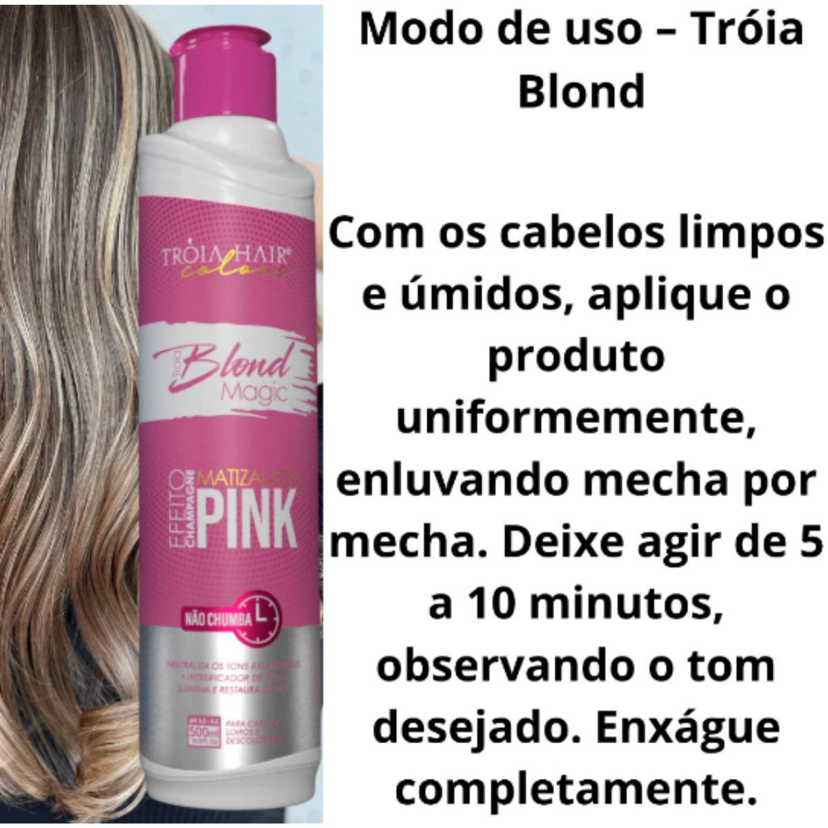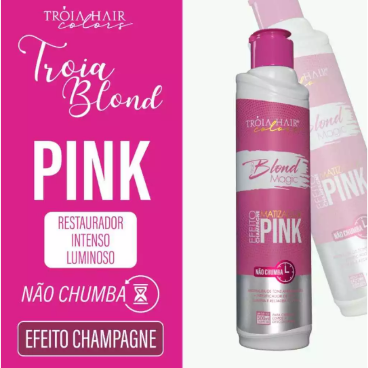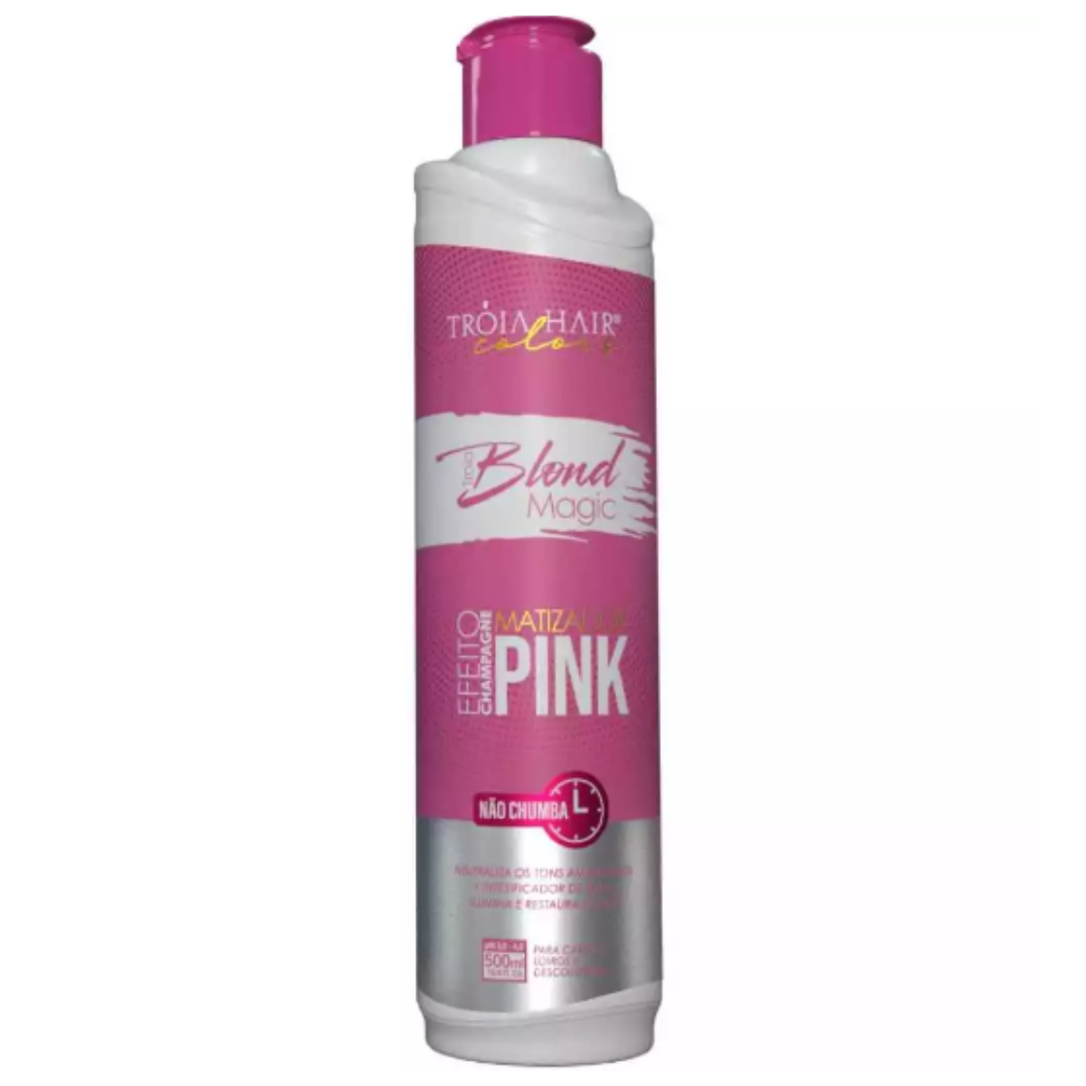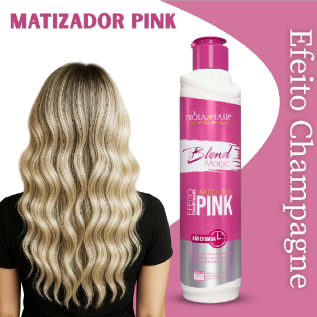 Mantenha seus cabelos loiros sempre deslumbrantes com a Troia Blond Magic Pink Efeito Champagne e desfrute de fios restaurados, saudáveis e com um brilho radiante.