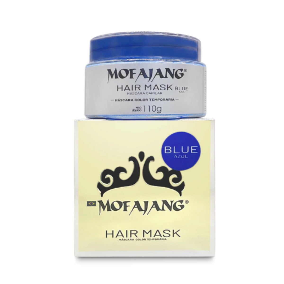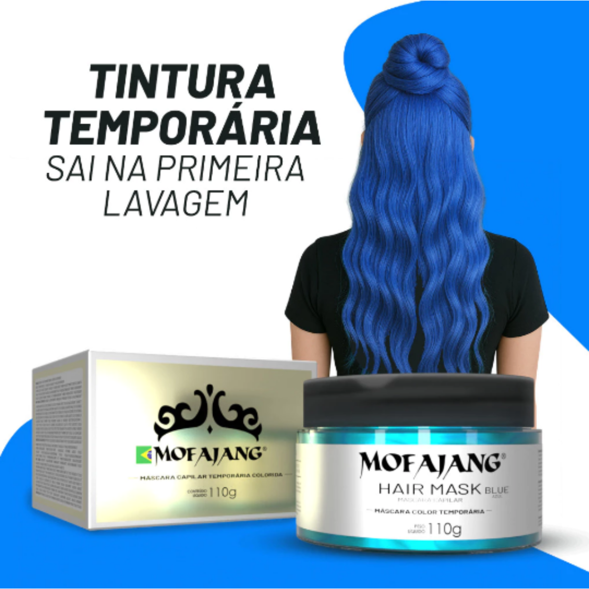 Transforme seu estilo com facilidade e segurança com a Máscara de Coloração Temporária Mofajang Blue! Confira também nossa linha de maquiagens Sheglam e outras cores vibrantes da Mofajang disponíveis em nossos produtos.