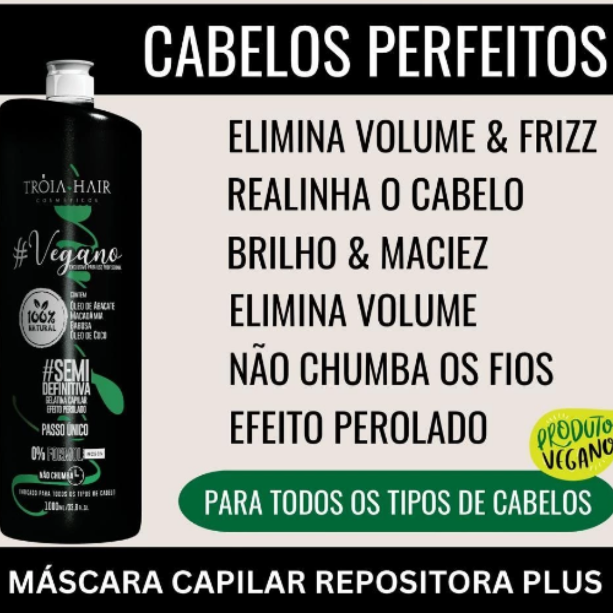 Contém: Um ativo Vegano semi definitiva Troia hair Máscara repositora plus 1 litro