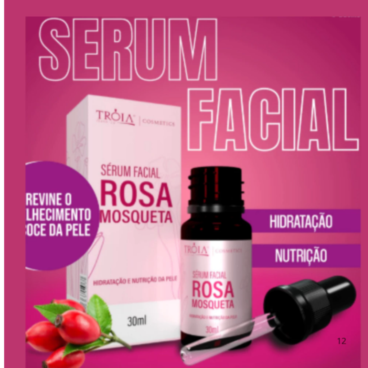 Garanta uma pele saudável e radiante com o Sérum Facial Rosa Mosqueta 30ml da Tróia Hair. Adquira agora e experimente o cuidado que sua pele merece!